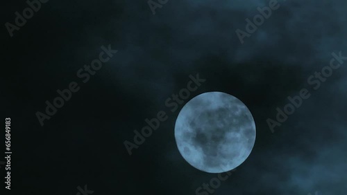 Poster full moon floating in the night cloudy sky. close-up. clouds at full moon. place to insert text. a s