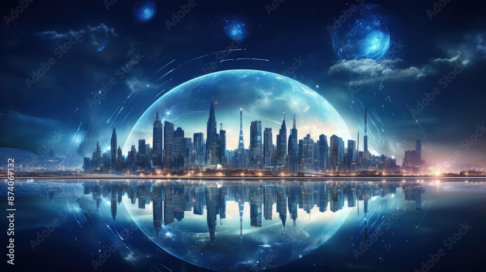 Poster : Future cyberspace technology digital background with skyline - , generative ai