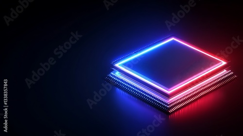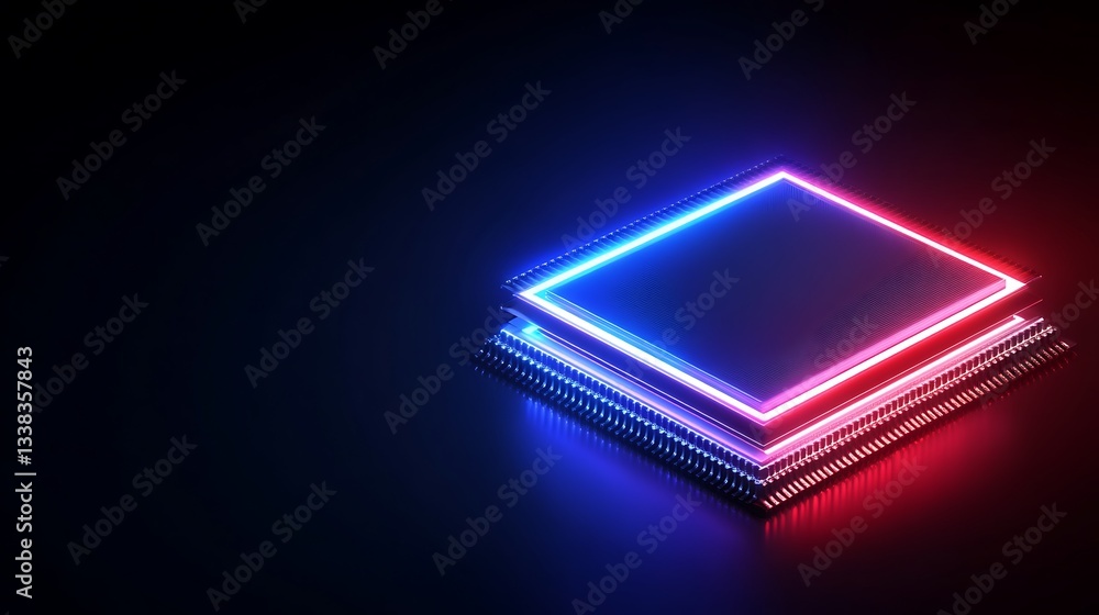 The watermark will not be included on Poster.: Futuristic cpu chip design with neon glow on dark background for technology and innovation concepts