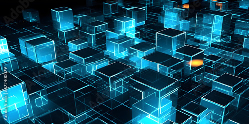 The watermark will not be included on Poster.: Futuristic cyberspace background, 3d style of data processing - futuristic technology - colorful cubes