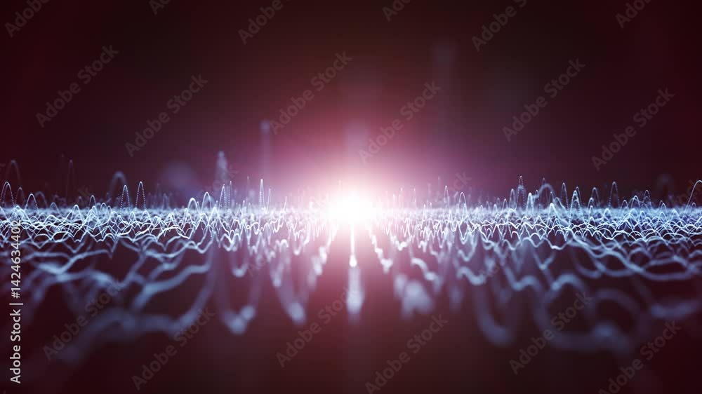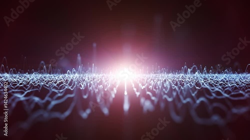 The watermark will not be included on Poster.: Futuristic line waves with blue red spot light loop animation -