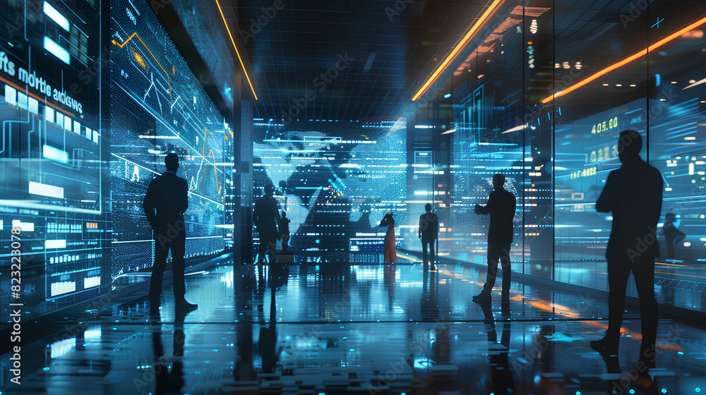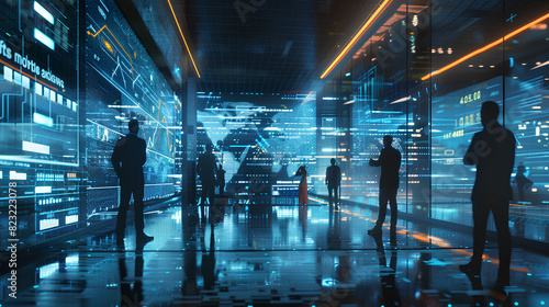 The watermark will not be included on Poster.: Futuristic technology concept - team of artificial intelligence software engineers and finance worker
