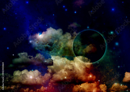The watermark will not be included on Poster.: Galaxy in a free space - 3d rendering