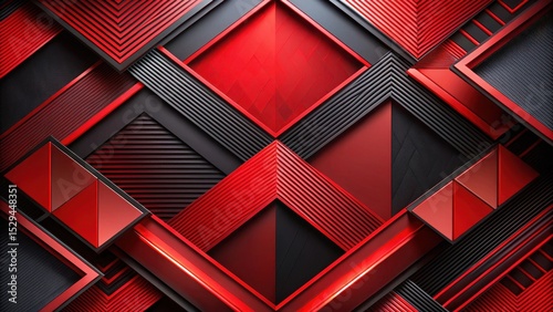 The watermark will not be included on Poster.: Geometric shapes in abstract red and black background with bold lines and vibrant colors