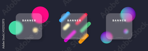 The watermark will not be included on Poster.: Glassmorphism style frame - trendy set of abstract banners template - vector realistic glass morphism