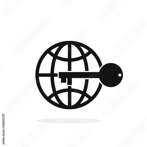The watermark will not be included on Poster.: Globe symbol with key - conceptual vector illustration -