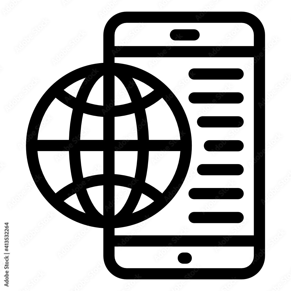 The watermark will not be included on Poster.: Globe with mobile, linear icon of mobile browser