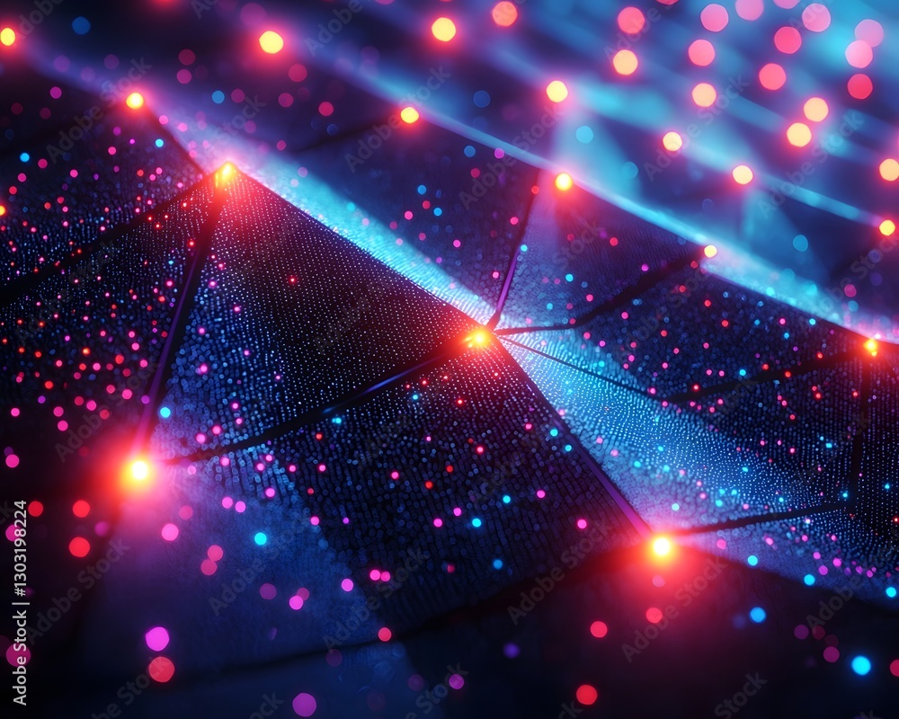 Glowing geometric triangular intersections in gradient blue purple and teal hues abstract digital waPoster