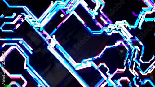 The watermark will not be included on Poster.: Glowing neon circuitry creates a complex and futuristic technological network, symbolizing the power