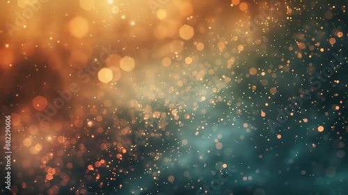 The watermark will not be included on Poster.: Glowing particles of light with a beautiful bokeh effect in warm autumn colors
