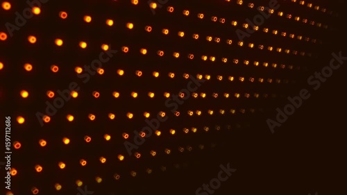 Poster glowing perspective orange dots forming luminous grid pattern on dark video background for dynamic d