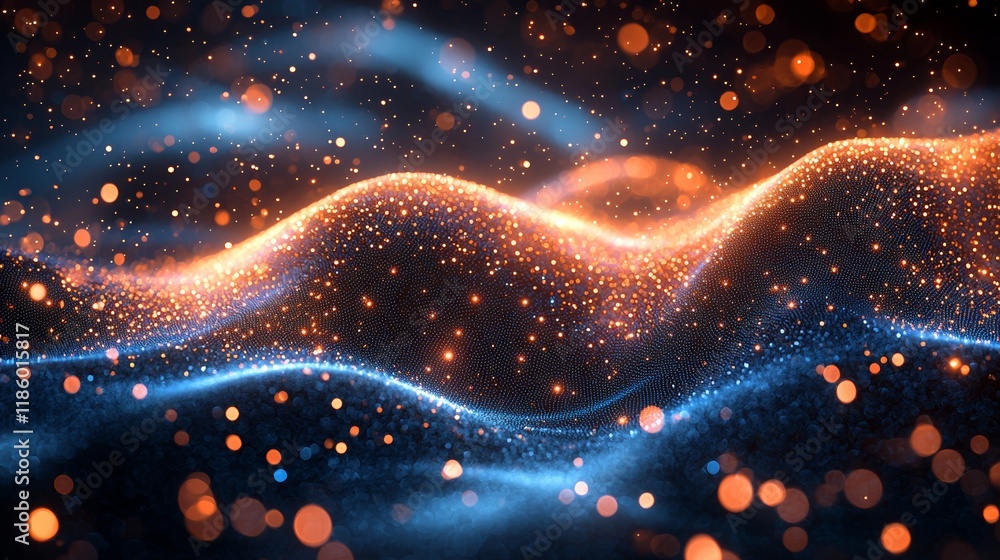 Poster : Glowing trails form as abstract light streams dance across a dark background