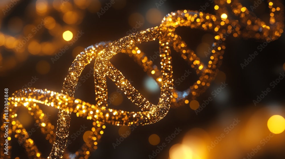The watermark will not be included on Poster.: Golden helix dna structure background featuring a glowing double helix strand in a futuristic scienc