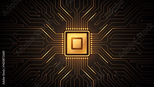 The watermark will not be included on Poster.: Golden microchip circuit board technology abstract background
