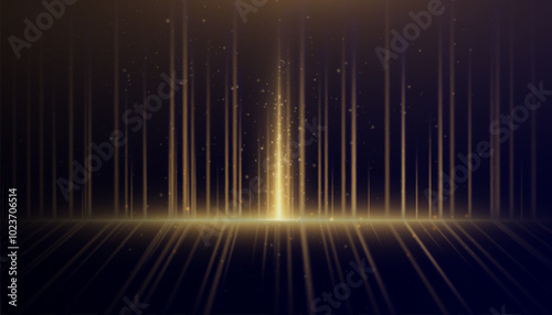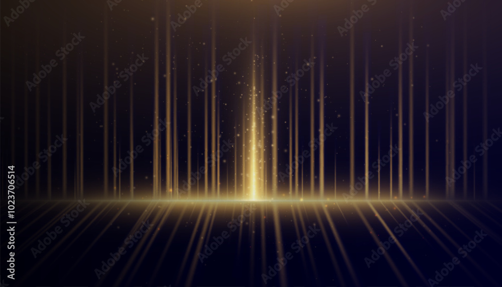 Poster golden vertical lines of light with glitter shimmering particles for background and overlay. glowing