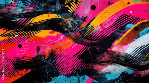 The watermark will not be included on Poster.: Graffiti pop-art backdrop with chaotic neon textures and halftone patterns