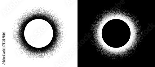 The watermark will not be included on Poster.: Halftone round as icon or background - abstract vector circle frame with dots as logo or sun concept -