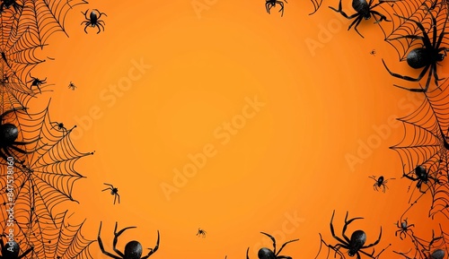 The watermark will not be included on Poster.: Halloween background with spider web and cobwebs on orange with background design