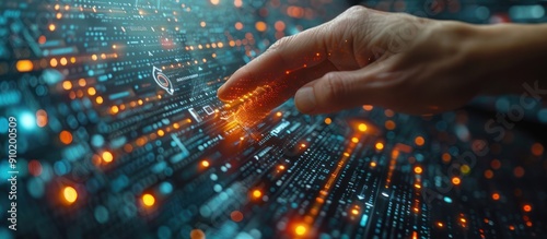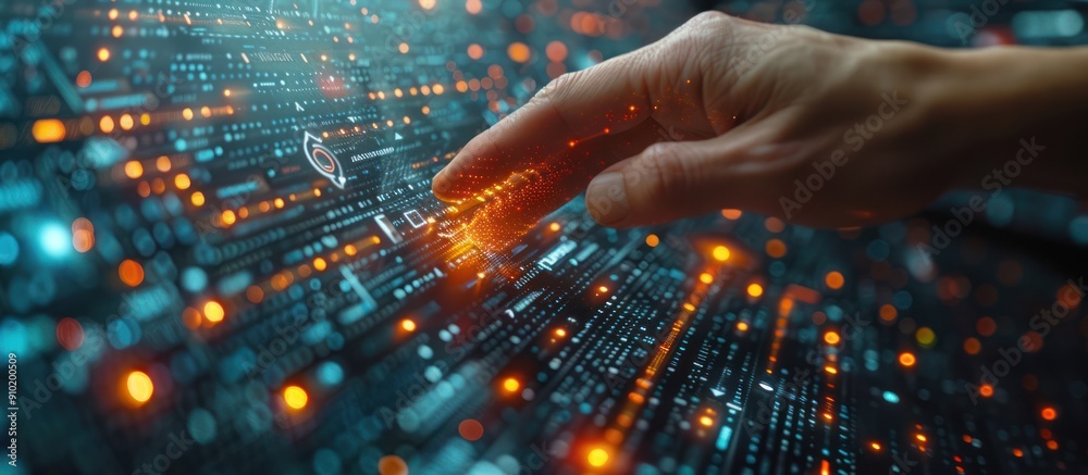 The watermark will not be included on Poster.: Hand interacting with digital interface