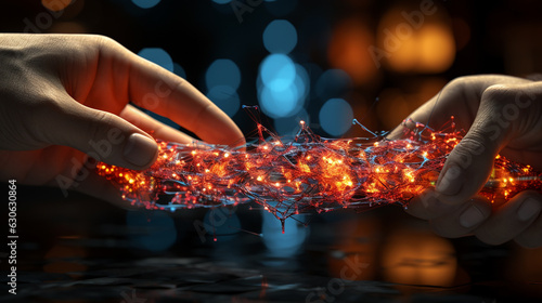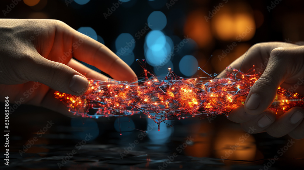 The watermark will not be included on Poster.: Hand touching digital neural network - generative ai