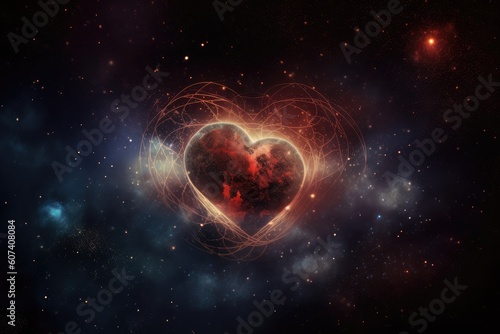 Poster heart, beating within the heart of a nebula, with stars in the background, created with generative a