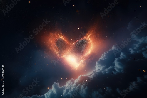 Poster heart, with rays of light shining through clouds of nebula dust and gas, created with generative ai