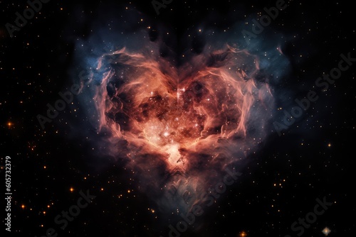 The watermark will not be included on Poster.: Heart-shaped nebula with star cluster in the background, created with generative ai