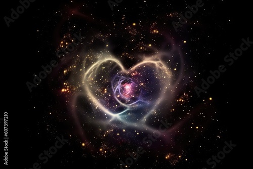Poster heart-shaped nebula with star in the center, surrounded by swirls and patterns, created with generat