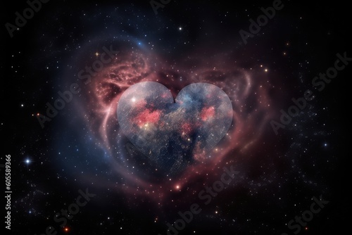 The watermark will not be included on Poster.: Heart-shaped nebula with stars and planets in the foreground, created with generative ai