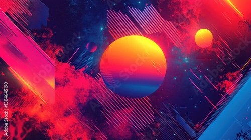 Poster : High-energy wallpaper with geometric shards and glowing gradients creating dynamic pop-art scene