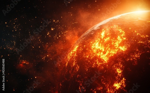 Poster high quality digital space art in 5k - a realistic visual representation of a burning planet