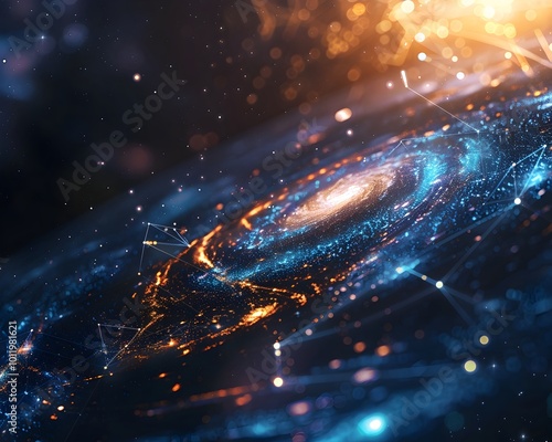 The watermark will not be included on Poster.: Holographic display of milky way galaxy s interstellar communication network connecting diverse civi