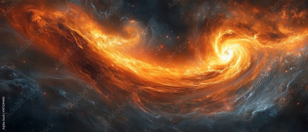 Poster hyper-realistic fantasy universe with swirling plasma clouds and high-detail cosmic waves.