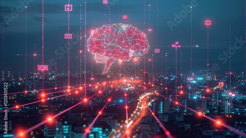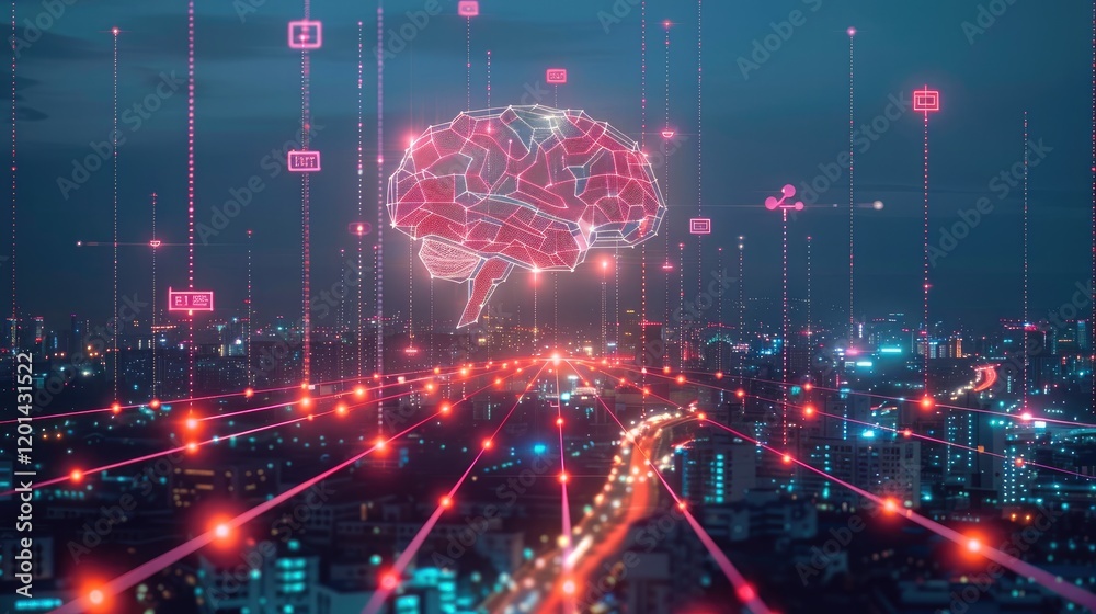 Poster illustrate a simple power grid with a central a.i. brain and from it, power lines branching out to d - Posters Poster illustrate a simple power grid with a central a.i. brain and from it, power lines branching out to d - Posters