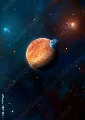 The watermark will not be included on Poster.: Image of two planets in the starry background