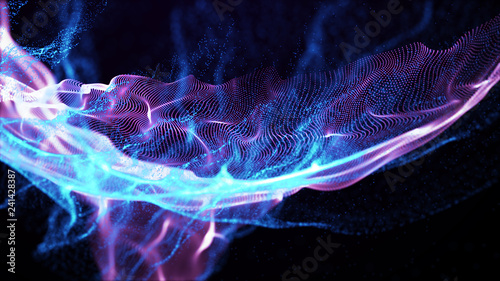 The watermark will not be included on Poster.: Imitation an abstract wave on dark background - network design with particle - big data - abstract brig
