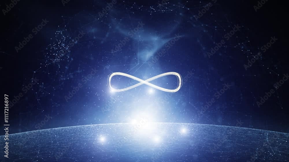 Poster infinty symbol looping on a glow digital cyberspace lines dots animation. - Posters Poster infinty symbol looping on a glow digital cyberspace lines dots animation. - Posters