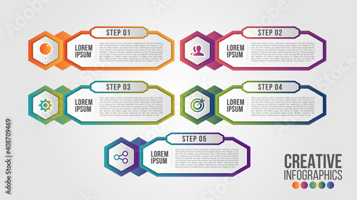 Poster : Infographic modern timeline design vector template for business with 5 steps or options illustrate a