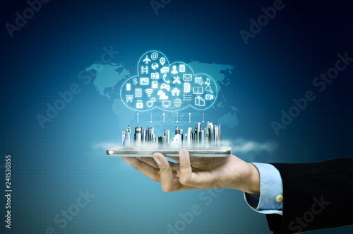 Poster : Internet cloud server application and hosting on virtual network conceptual image