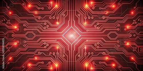 Poster intricate circuit pattern with neon red light panoramic