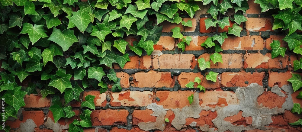 Poster ivy climbing on a brick wall creating a charming composition with copy space image