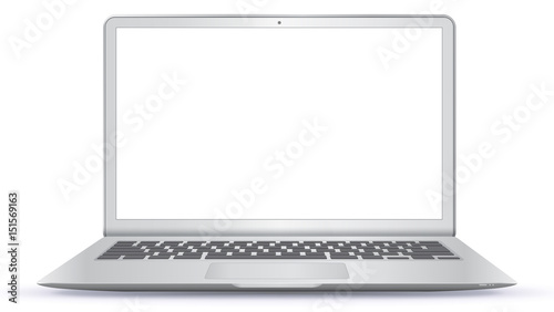 The watermark will not be included on Poster.: Laptop computer with blank screen isolated on white background