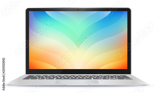 The watermark will not be included on Poster.: Laptop computer with colorful abstract screen vector illustration
