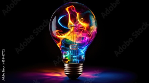 Poster lightbulb idea concept with colorful liquidof splashing unique creative idea on black background, ge