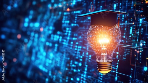 The watermark will not be included on Poster.: Lightbulb with graduation cap over digital technology background