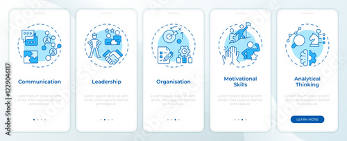 Line manager skills blue onboarding mobile app screen - corporate - walkthrough 5 steps editable graphPoster