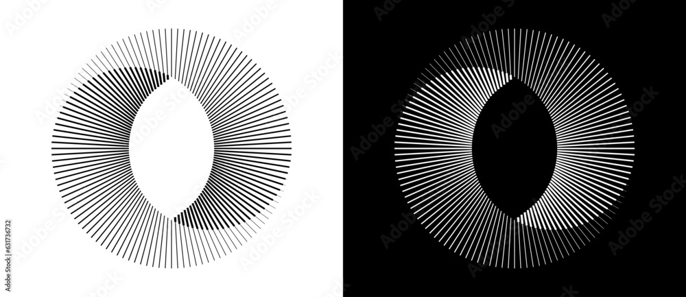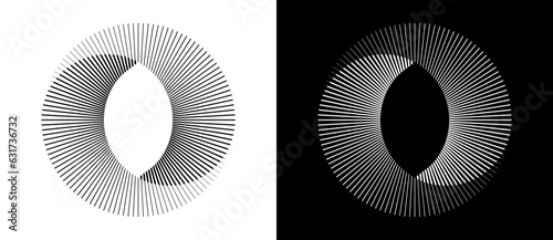 The watermark will not be included on Poster.: Lines in circle abstract background - dynamic transition illusion - black shape on a white background
