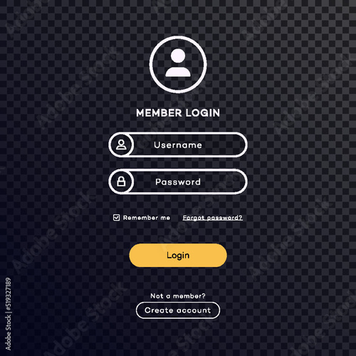 The watermark will not be included on Poster.: Login form page dark theme on transparent background for app development, smartphone mockups, websit