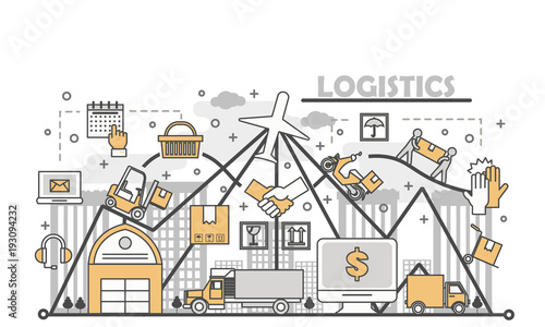 The watermark will not be included on Poster.: Logistic services concept vector illustration in flat linear style