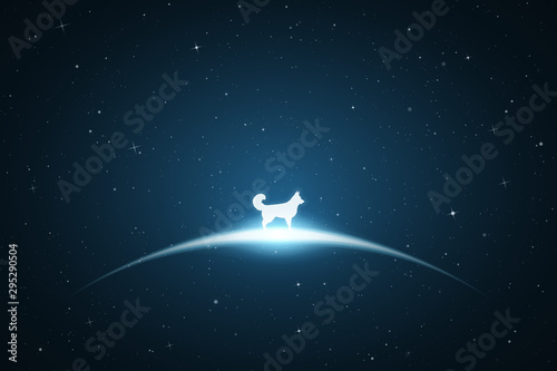 Poster : Lonely dog in space - vector conceptual illustration with white silhouette of animal - bue abstract ba